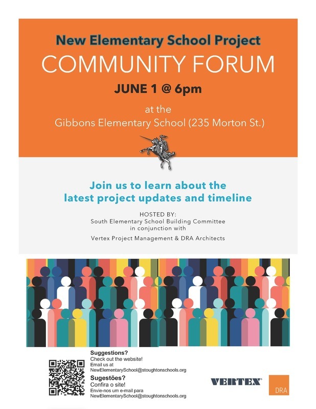 All of our families and community members are invited to our next Community Forum to learn the latest information about the New Elementary School Building Project. The forum will take place Thursday, June 1, 2023 at 6pm at the Gibbons School (235 Morton St.).